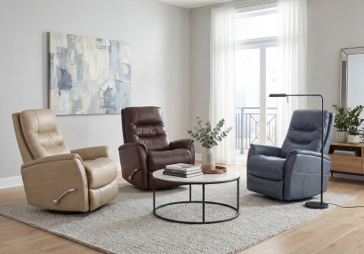 The 250 Revelation is a medium-scale recliner with a 360-degree swivel-glider base. The chair features top-grain, cowhide leather, clean lines, a…
