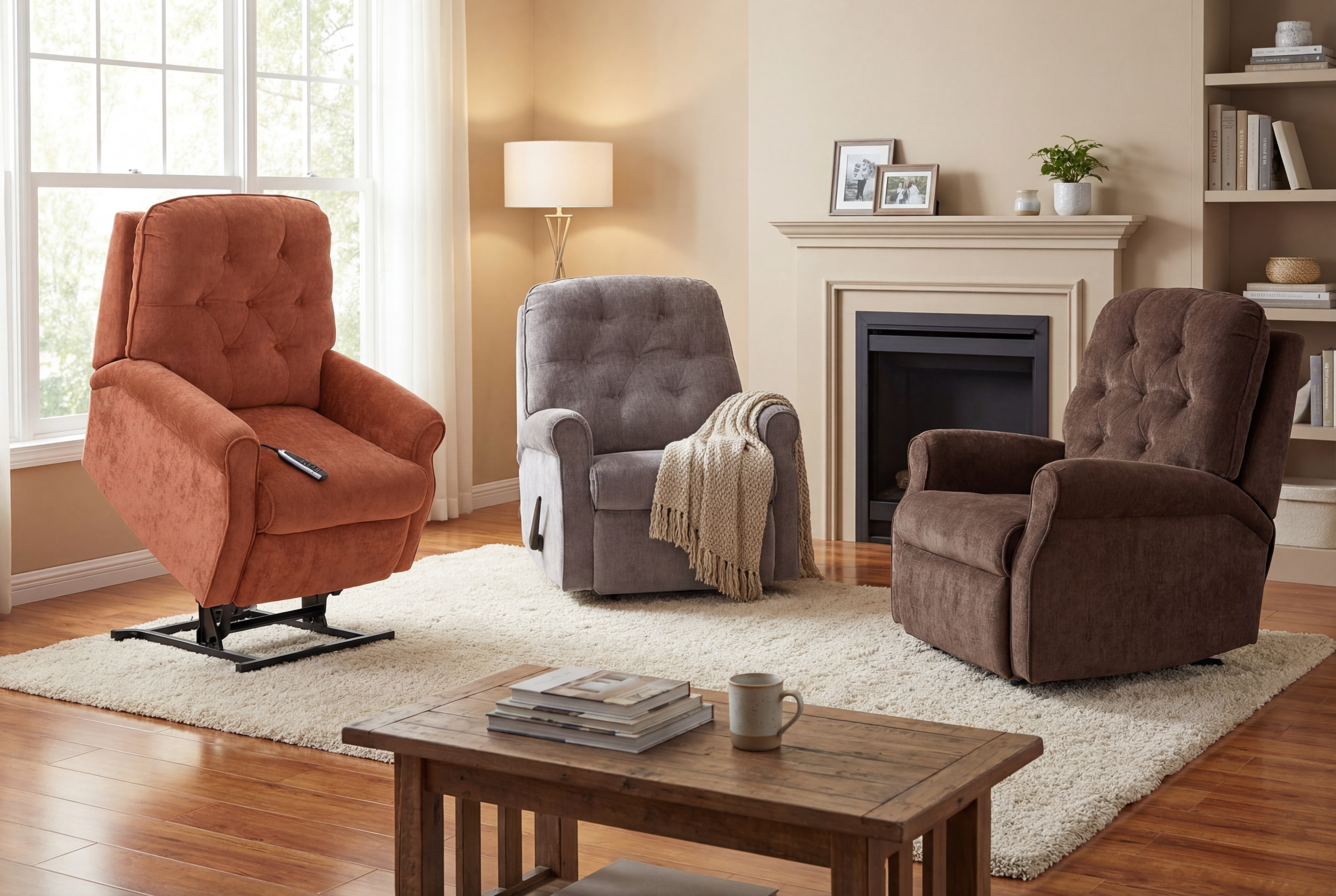 This smaller scale chair is available as a manual rocker recliner or as a lift chair with Lift+Zero Gravity mechanism.