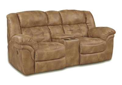 The Frontier Double Reclining Sofa in Almond features a sleek design with double needle accent stitching, adding a touch of sophistication to any…