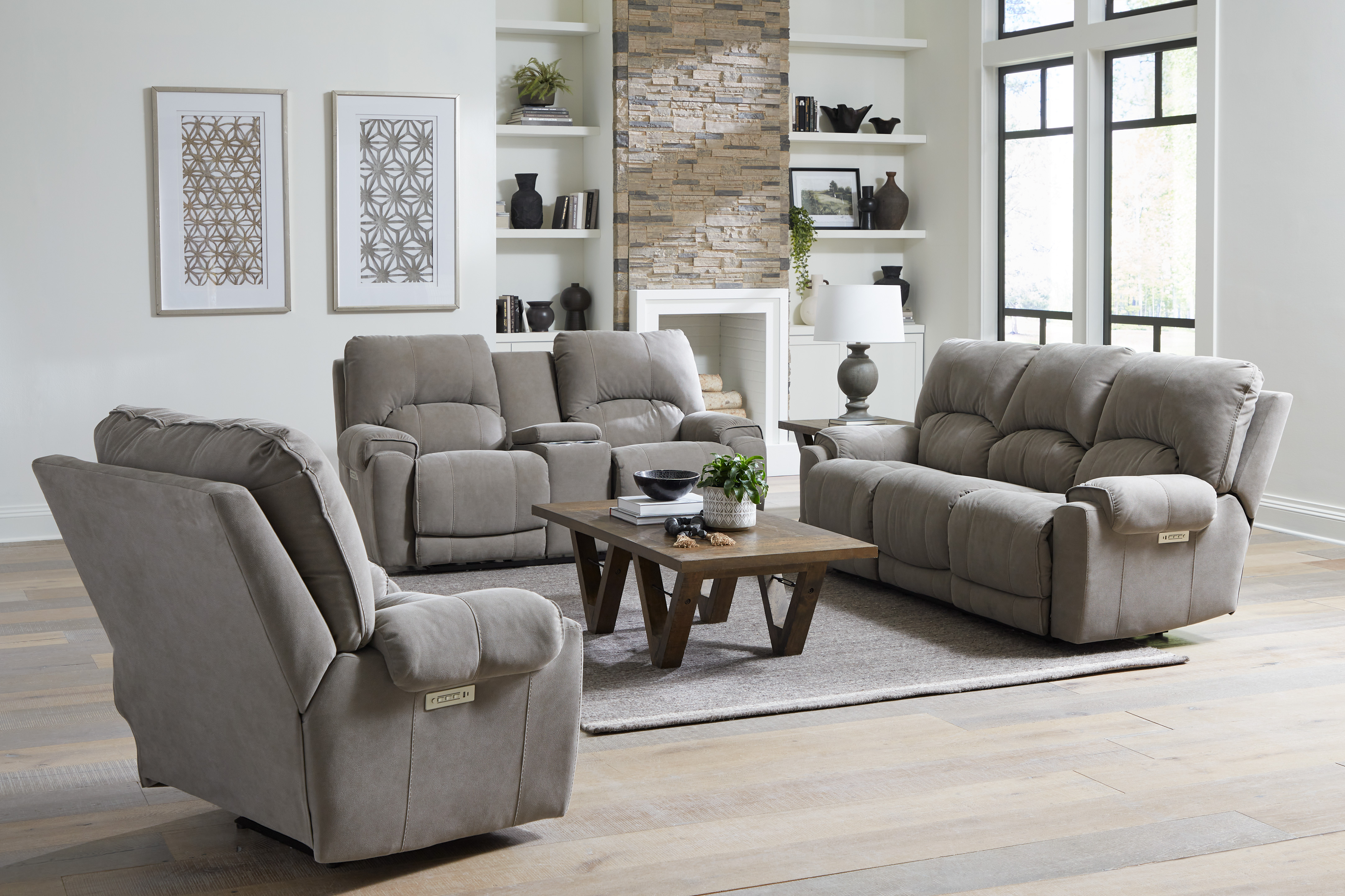 The "Showtime" is the perfect combination of comfort and functional style. With a Zero Gravity mechanism that lays flat enough to sleep in, it also features a power headrest (for TV position), power lumbar, and an extended footrest. The Showtime group also features a next-generation double rub cover for 10x durability compared to other fabric upholstery. Make this group your go-to for entertaining, movies, or just relaxing.
