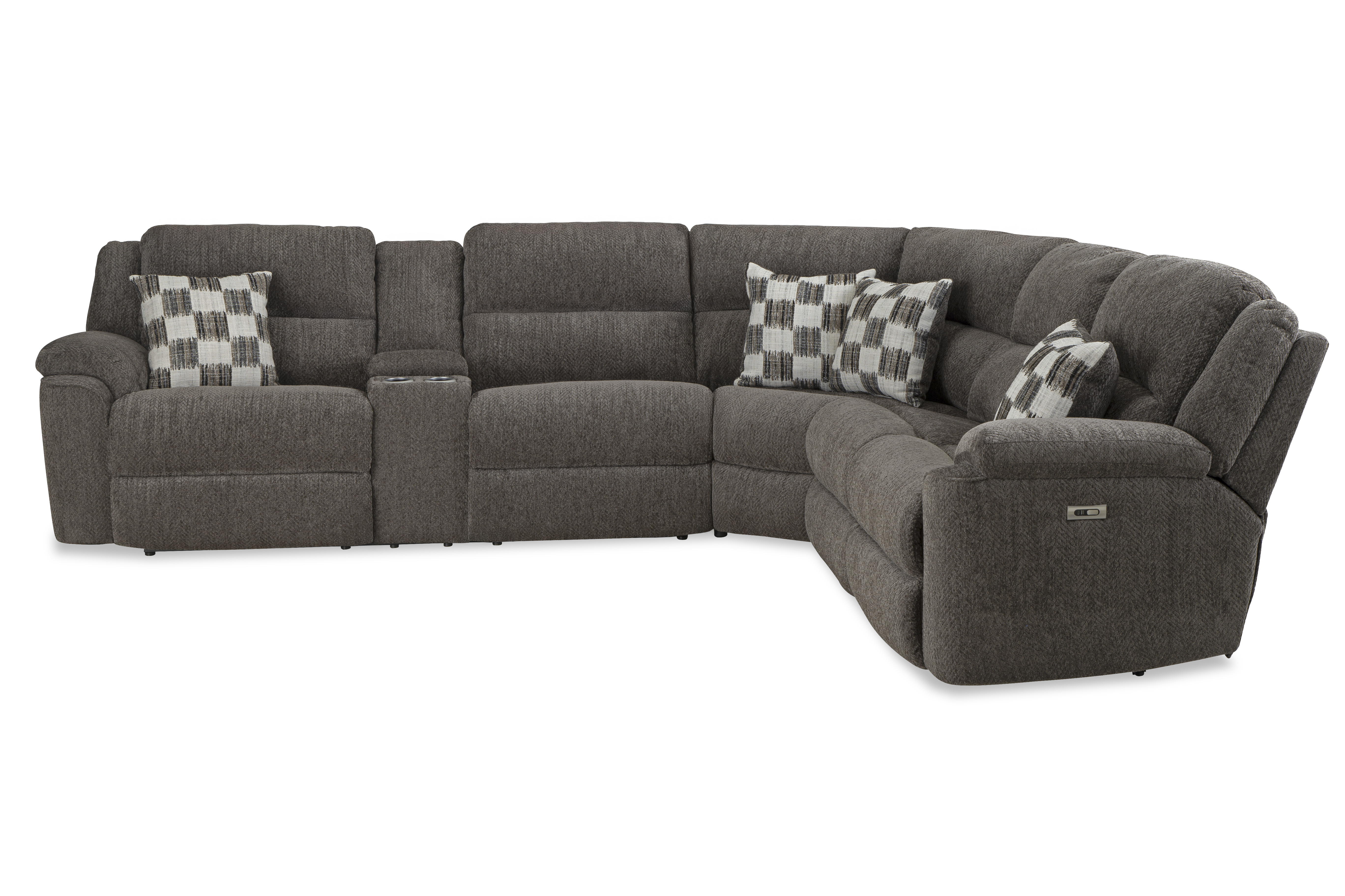 Elevate your living space with this plush, multi-configuration power sectional, designed to be the ultimate centerpiece for relaxation. Featuring a rich, textured charcoal-grey finish and overstuffed cushions, this seating arrangement effortlessly blends cozy appeal with modern, high-tech convenience.