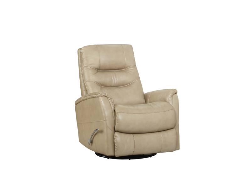 The 250 Revelation is a medium-scale recliner with a 360-degree swivel-glider base. The chair features top-grain, cowhide leather, clean lines, a solid foam track arm, and a pad-over chaise for extra leg support. The polished aluminum handle is both stylish and functional, and adds a modern, chic finish to this streamlined rocker recliner.